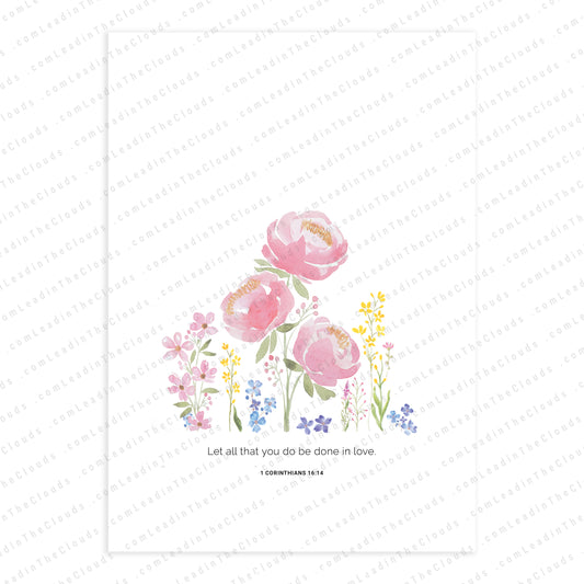 A4 Watercolour Florals - 1 Corinthians 16:14